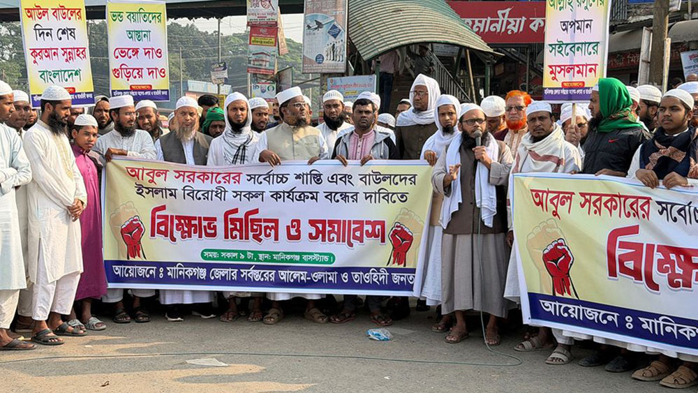 এর আগে সকাল ৯টার দিকে সহস্রাধিক ওলামায়ে কেরামের নেতৃত্বে তৌহিদী জনতা মানিকগঞ্জ বাসস্ট্যান্ড এলাকা থেকে বিক্ষোভ মিছিল নিয়ে শহরে প্রবেশ করে। স্টেডিয়াম মোড় এলাকায় অবস্থানরত বাউল অনুসারীদের দিকে মিছিল থেকে শতাধিক লোক ধাওয়া দিলে তারা ছুটোছুটি করে নিরাপদ স্থানে আশ্রয় নেন। এ সময় তিনজন বাউল অনুসারী গুরুতর আহত হন এবং কয়েকজন প্রাণ বাঁচাতে পাশের পুকুরে লাফ দেন।