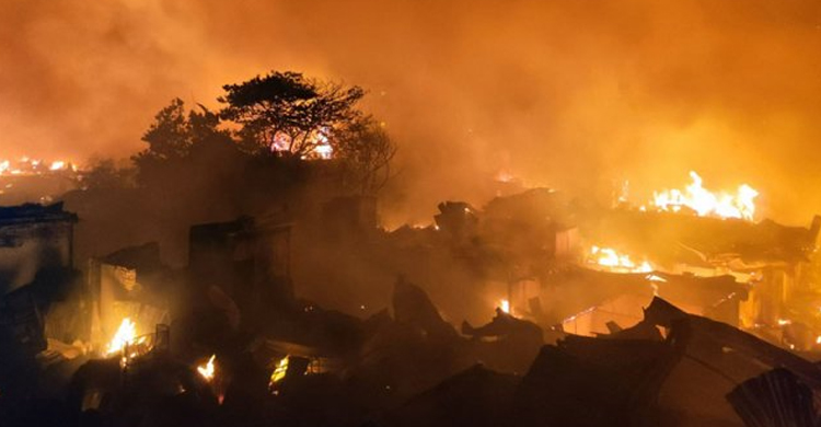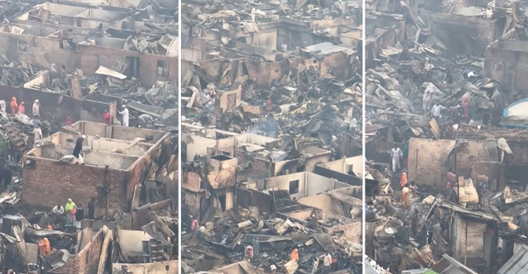 প্রসঙ্গত, মঙ্গলবার বিকেল ৫টা ২২ মিনিটে আগুনের সূত্রপাত হয়। তবে ঘটনাস্থলে তীব্র পানি সংকটের কারণে আগুন নিয়ন্ত্রণে আনতে কর্মীদের বেশ বেগ পেতে হয়। ফায়ার সার্ভিস ও স্থানীয় কমিটি এখনও আগুন লাগার প্রকৃত কারণ জানাতে পারেনি।