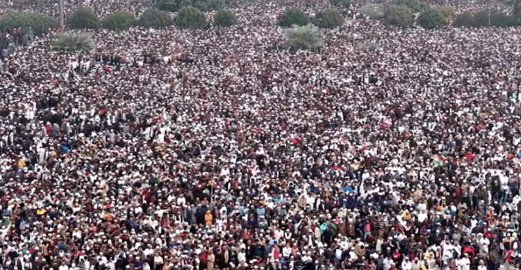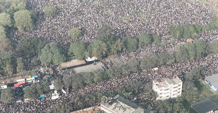 এই জানাজায় জনসমুদ্র শব্দটিও যেন বিশালতার কাছে হার মেনেছে। কেননা যেদিকে চোখ যায় সেদিকেই চোখে পড়েছে শুধু মানুষ আর মানুষ। শোনা গেছে লাখো কণ্ঠের কান্নাজড়িত দোয়া।